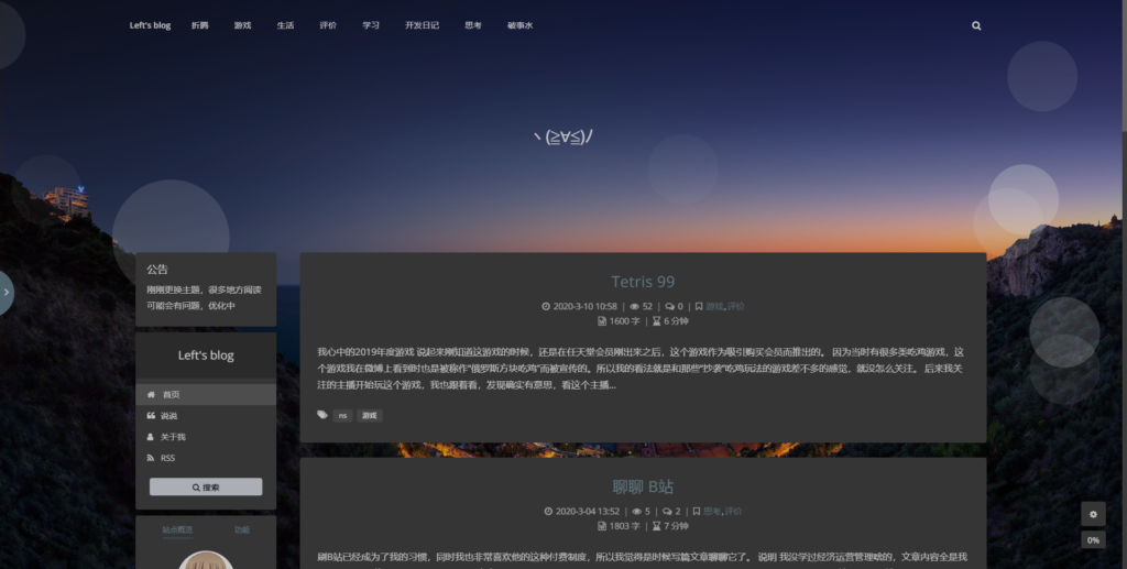 更换主题为 Argon,这个主题太合我心意了,折腾了一晚上