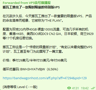 再次迁移,还是搬瓦工,但是限量套餐,相当于免费升级网络(