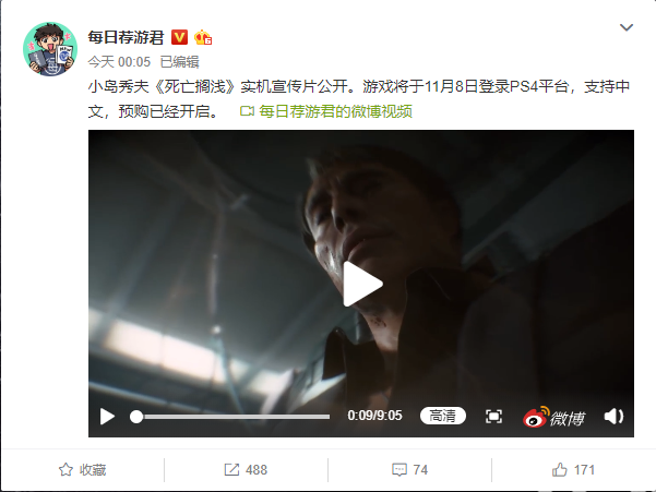 今天一大早起来同学告诉我死亡搁浅公布发售日期了。