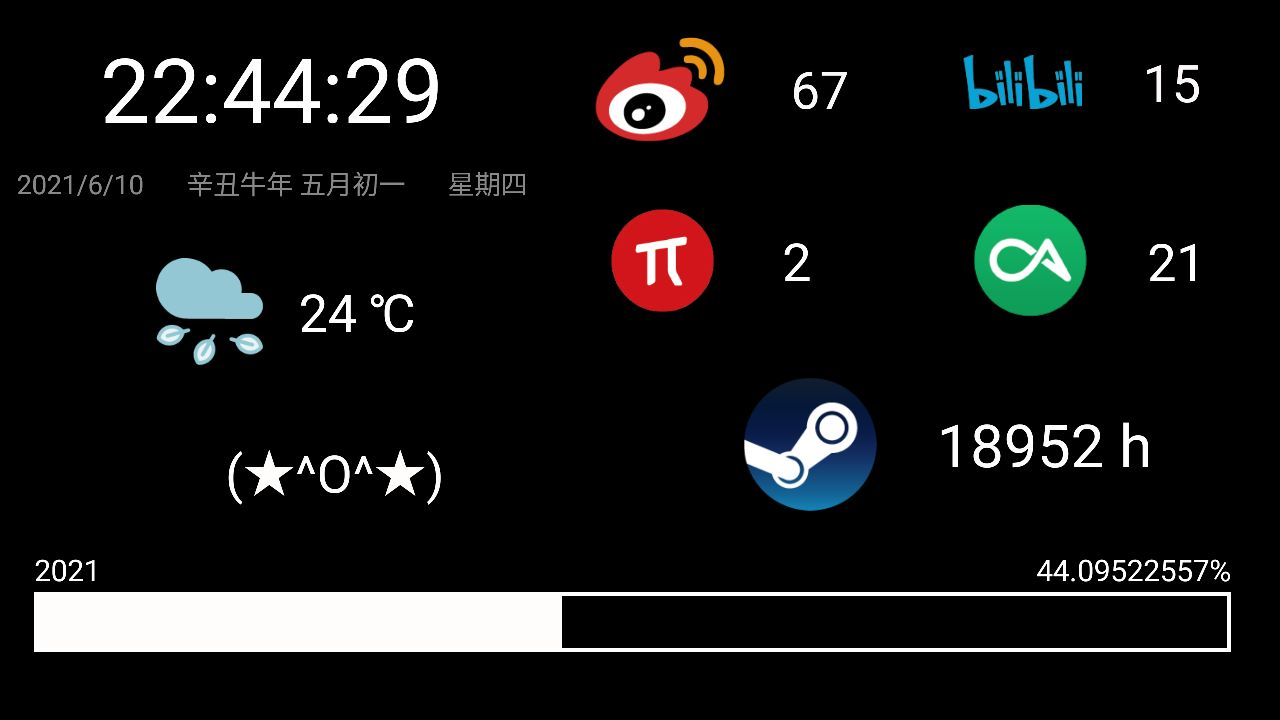 带着这样的想法,L-Clock 诞生了,不仅仅能够显示时钟,还有倒数日,过去日标记你的重要时刻,也有番茄时钟这样的实用功能。同时兼具趣味性:年进度条实时查看今年已经过去了多少,不断变幻的颜文字让你思考问题或发呆时可以和手机有个小小的互动。