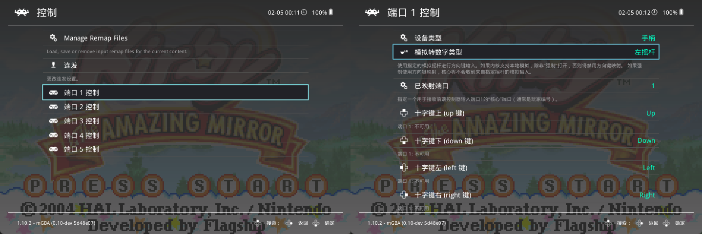 配置完后,需要设置保存手柄映射文件,在 控制 → Manage Remap Files,这样下次打开就会自动加载了,哪种保存方式,就看个人喜好了