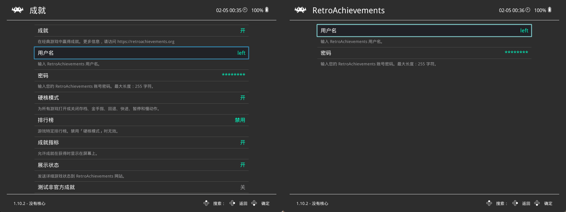 账号在 retroachievements 注册即可,注册完成后在软件的 设置 → 成就 和 设置 → 用户 → 账户 → RetroAchievements 中分别填写即可
