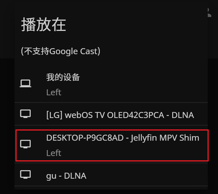 播放时 Jellyfin 右上角选择 Jellyfin MPV Shim 即可