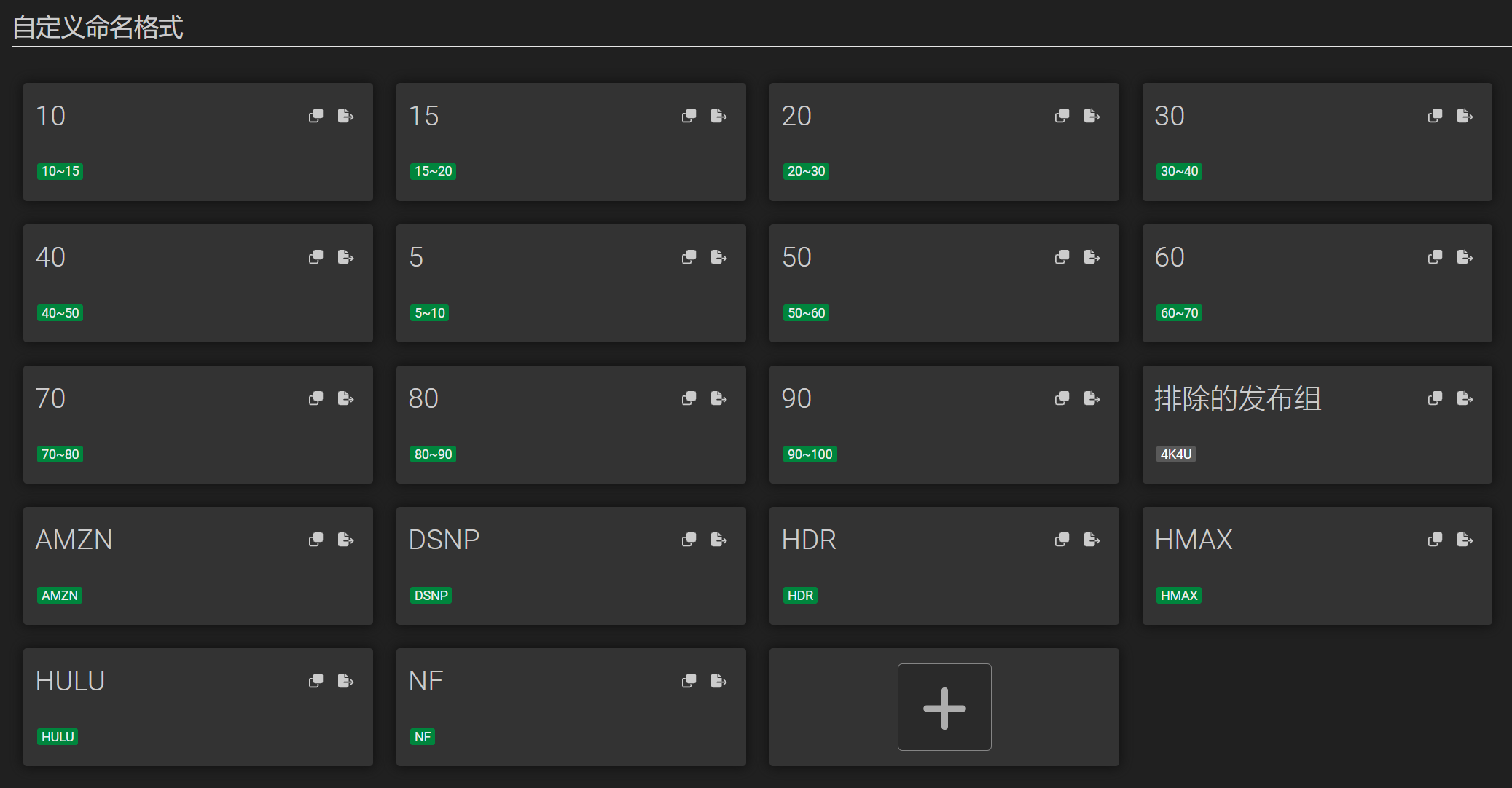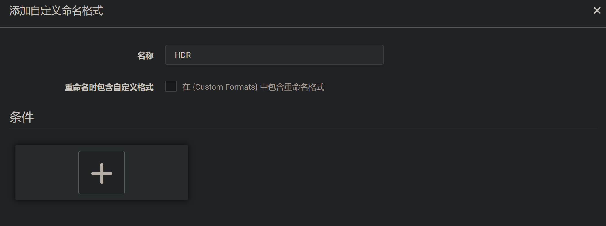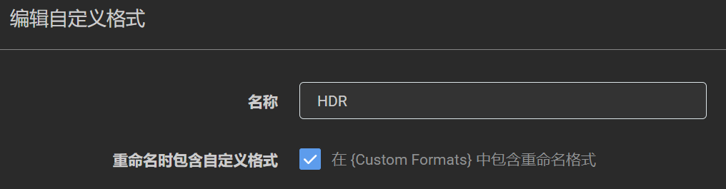 例如我更偏好带有 HDR 的电影,首先,在 自定义命名格式 中添加一个新的 自定义格式 ,命名为 HDR;