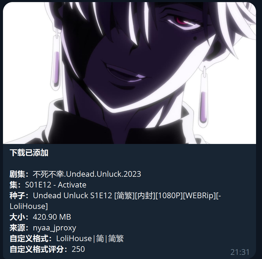注意我这里 最小自定义格式分数 设置为了 100 ,这是为了避免下载到生肉