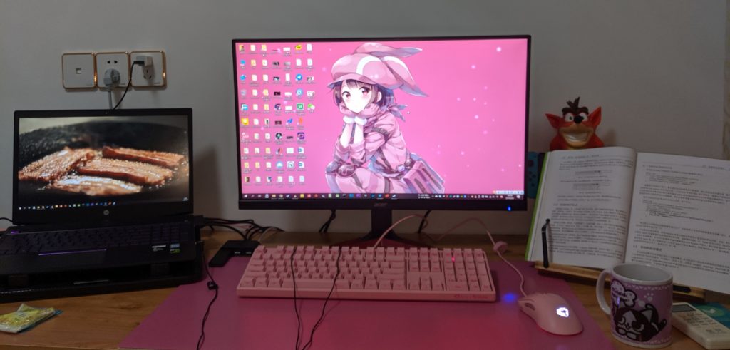 租房后笔记本终于有位置能放在桌上了(之前在学校宿舍放桌子下面),能享受到双显示器的快感。