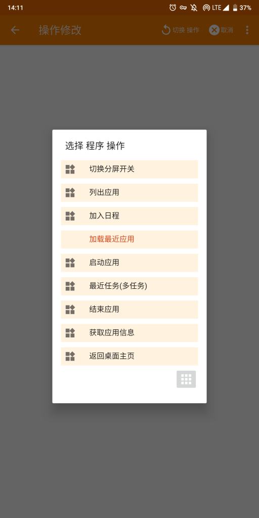来到任务编辑窗口,点右下角+号,选择程序,然后选择启动应用,选择我们要启动的指纹解锁软件。