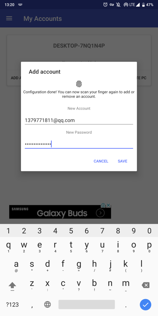 注意这里填的是电脑管理员的账号和密码,不是解锁用的Pin码,输完信息验证一遍指纹,保存。