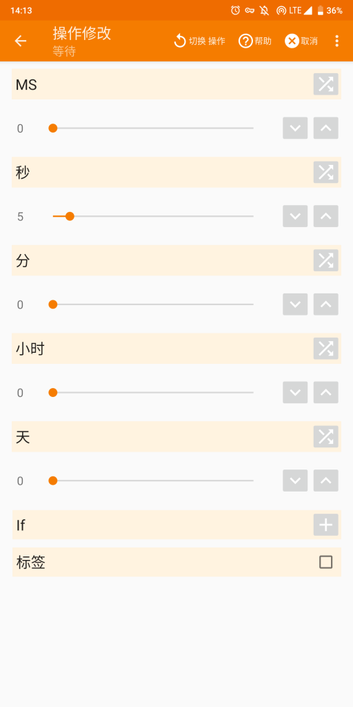 同样点击右下角+号,选择任务,选择等待,然后设置秒数。